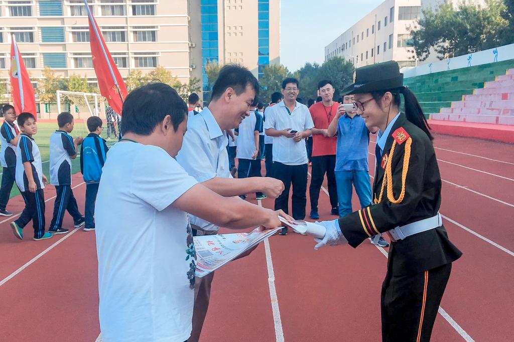 责任敢于担当,文明得以传承。2017年9月25日早晨,2016级7年级的39名同学接过了2015级国旗护卫队手中的国旗,继续执行升旗任务。我们坚信新的国旗护卫队会更加珍惜每周这一神圣而又庄严的时刻,坚持训练、不辱使命。我们更要感谢往届国旗护卫队的无私奉献,祝他们学习进步、健康快乐。