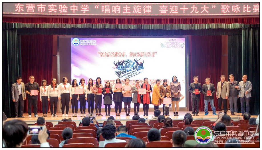 10月13日,东营市实验中学运河路校区礼堂内琴声悠扬、人头攒动,由党办、工会、行政处、教学处组织的“唱响主旋律,喜迎十九大”教职工歌咏比赛拉开帷幕。参加此次歌咏比赛的选手都是我校教职员工,来自教学一线、行政教辅等岗位的一百多位选手,用歌声抒发爱党、爱国、爱校、爱家的家国情怀。歌曲《风吹麦浪》、《荷塘月色》、《大中国》、《壮志在我心》和《唱支山歌给党听》等抒发了广大教师砥砺奋进,永远跟党走的坚定决心和喜迎十九大的喜悦之情。歌曲《在那东山顶上》和《春暖花开》唱出了广大教师对生活的赞美与幸福之情。美术教研组的四位教师以一曲《中国人》把身为中国人的自豪之情表达的酣畅淋漓。十七位身着军礼服的英语教师英姿飒爽,以一曲《红歌联唱》唱出了爱党、爱国的浓情厚意。生物教研组《众人划桨开大船》则唱出了实验中学全体师生团结一心,争做致远先锋,共筑中国梦的美好理想。经过两个多小时的角逐,22首作品分获比赛的各个奖项。