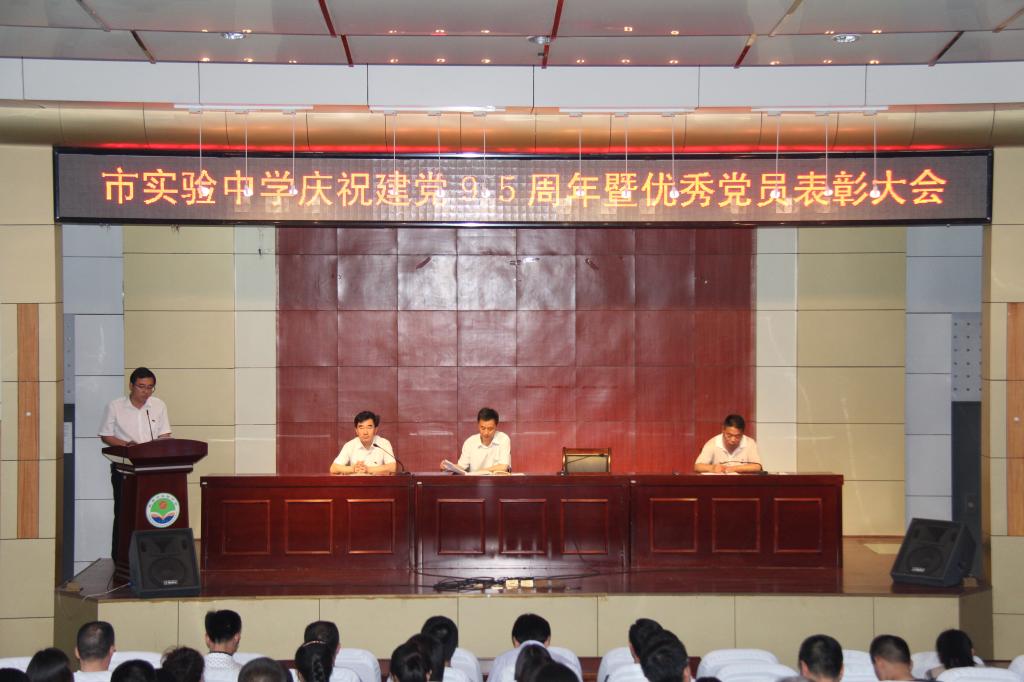 2016年7月1日下午,市实验中学召开全校党员和入党积极分子大会,庆祝中国共产党成立95周年暨优秀党员表彰大会。会议由校党委委员、副校长明玮同志主持。