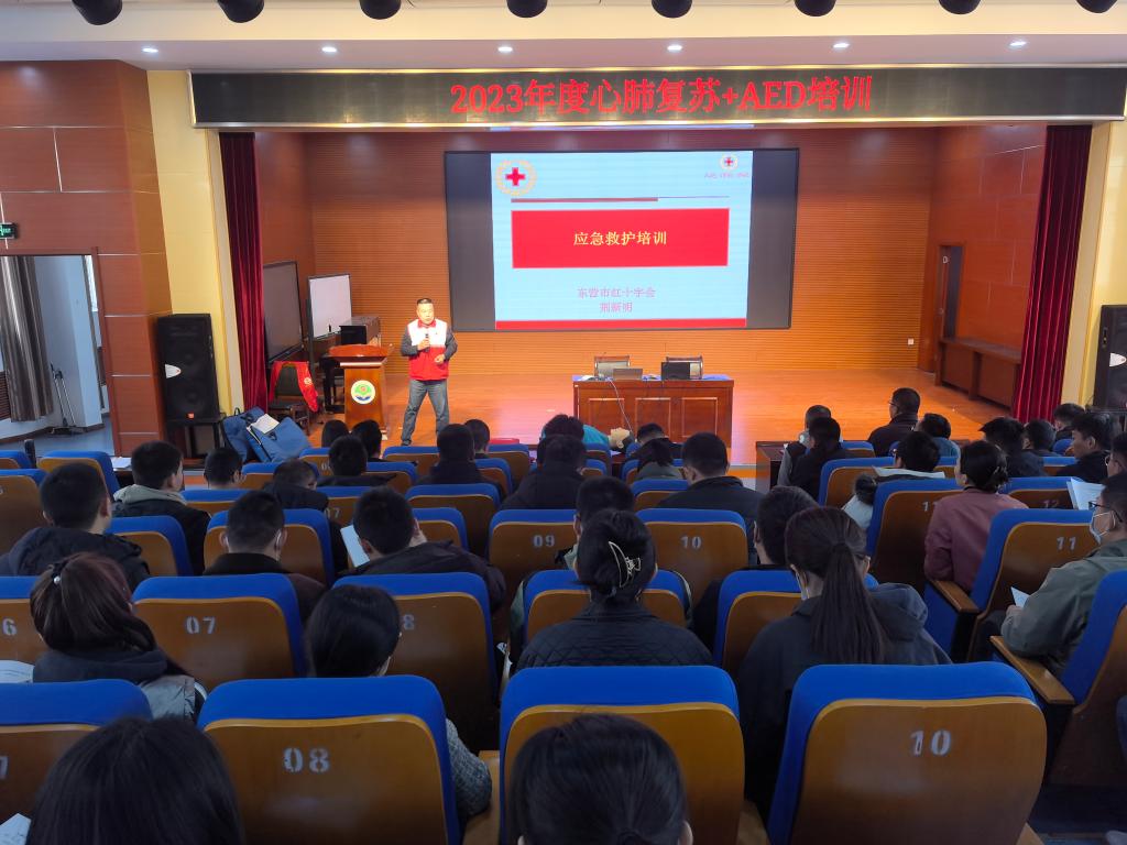 3月26日上午9时,东营红十字救护进校园对我校体育教师及校医务工作者进行了心肺复苏和AED急救培训,本次活动以培训教师救护能力为目的,提高了体育教师及校医务工作者们的急救技能水平。