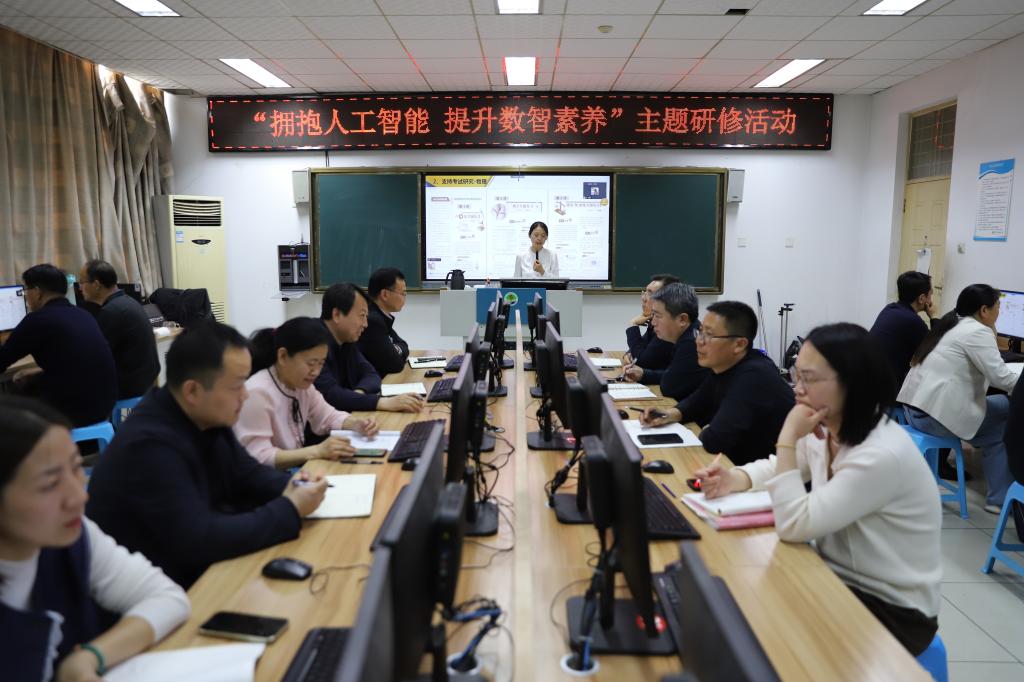 在人工智能浪潮给学校教育教学带来深刻变革的大背景下,为全面提升教师的数智素养,4月16日下午,东营市实验中学于辽河路校区博学楼微机室精心举办了一场《文献检索综述、知网使用与AI赋能》专题培训。校党委副书记、校长张利波,校党委委员、副校长陈新波,校党委委员、副校长马海忠,部分中层干部和骨干教师代表,张利波名校长工作室成员,孟丽君名师工作室成员及周边部分学校教师代表参加了本次培训。