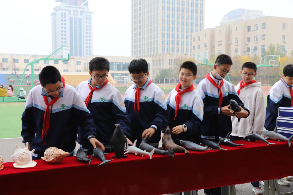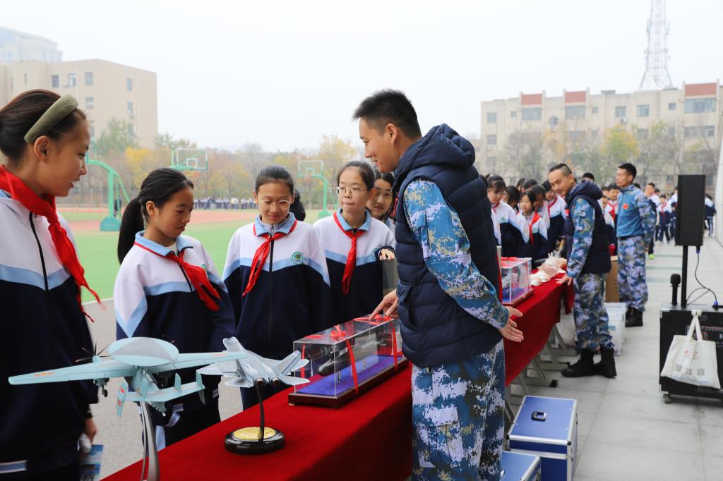 活动同步开设国防教育主题展览。神秘的海洋生物展开启了探索蔚蓝世界的新窗口,舰艇纪念章陈列区记录着人民海军的光辉航迹,精致的舰艇模型让同学们近距离感受大国重器的风采。各展区将思政教育融入互动体验,从海洋四大名螺到潜艇的设计原理,从我国航母数量名称到航母平台的演变,队员们在与讲师的互动中由浅入深,在沉浸式学习中深化了对海洋强国战略的理解,筑牢了关心国防、热爱国防的思想根基。