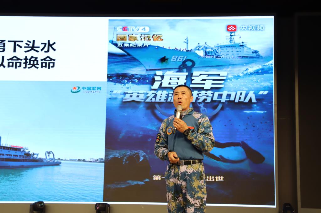 “逐梦深蓝”讲师团成员石相成带来“国殇到国强 不屈的脊梁”专题讲座。他通过生动的历史图片、珍贵的文献资料以及感人至深的讲述,带领队员们重温了波澜壮阔的抗争岁月,让大家深刻感悟中华民族的不屈精神与爱国情怀,现场气氛热烈庄重。