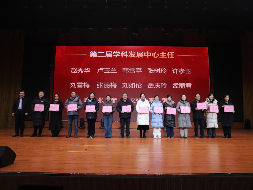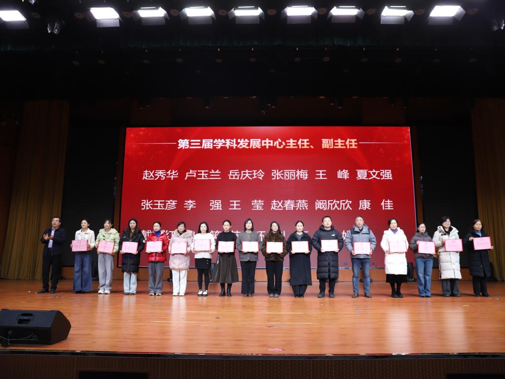 第一项议程举行了学科发展中心换届仪式。校党委副书记、校长张利波为第二届学科发展中心主任颁发荣誉证书,为第三届学科发展中心主任、副主任颁发聘书,为五位教师颁发学科发展中心主任指导教师聘书。