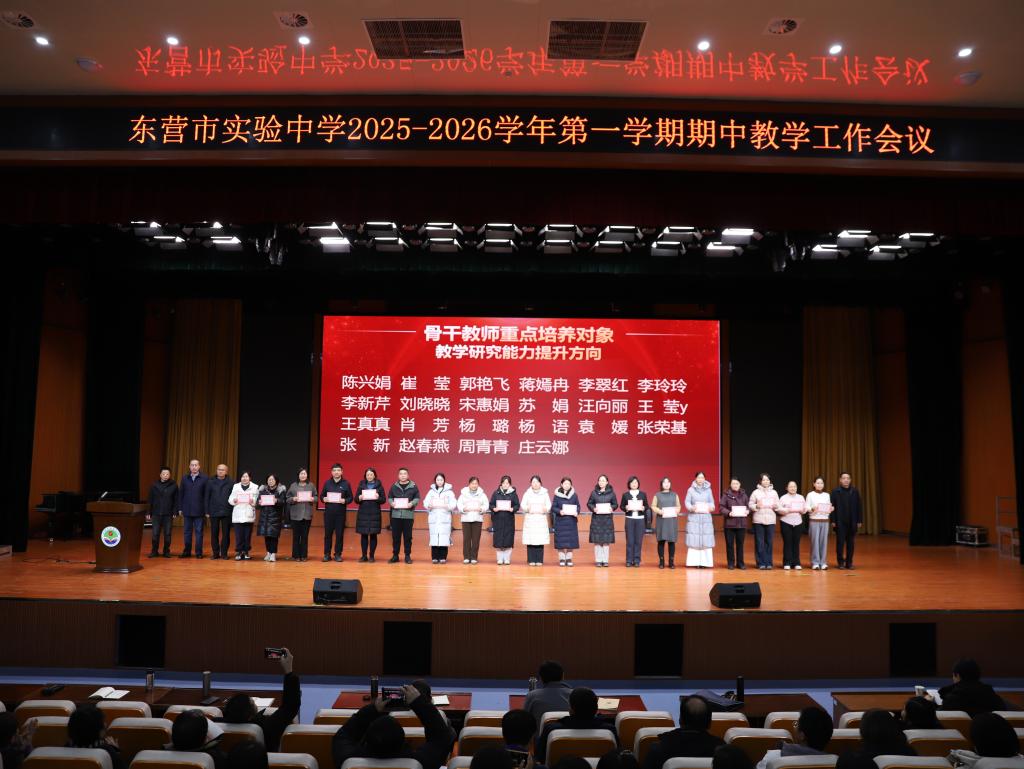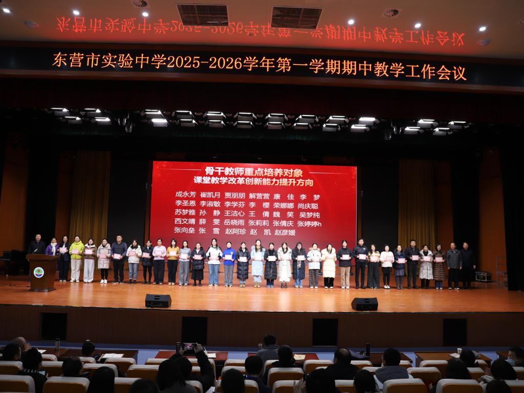 心怀热忱,行有坚持;深耕不辍,方能致远。为全面总结本学期开学以来的教学工作,精准部署下一阶段教学任务,东营市实验中学于12月3日下午在运河路校区礼堂召开2025-2026学年第一学期期中教学工作会议。学校领导、各处室主任、年级主任,教研组长、教学管理人员、校级骨干教师、重点培养对象等参加会议。会议由校党委委员、副校长陈新波主持。