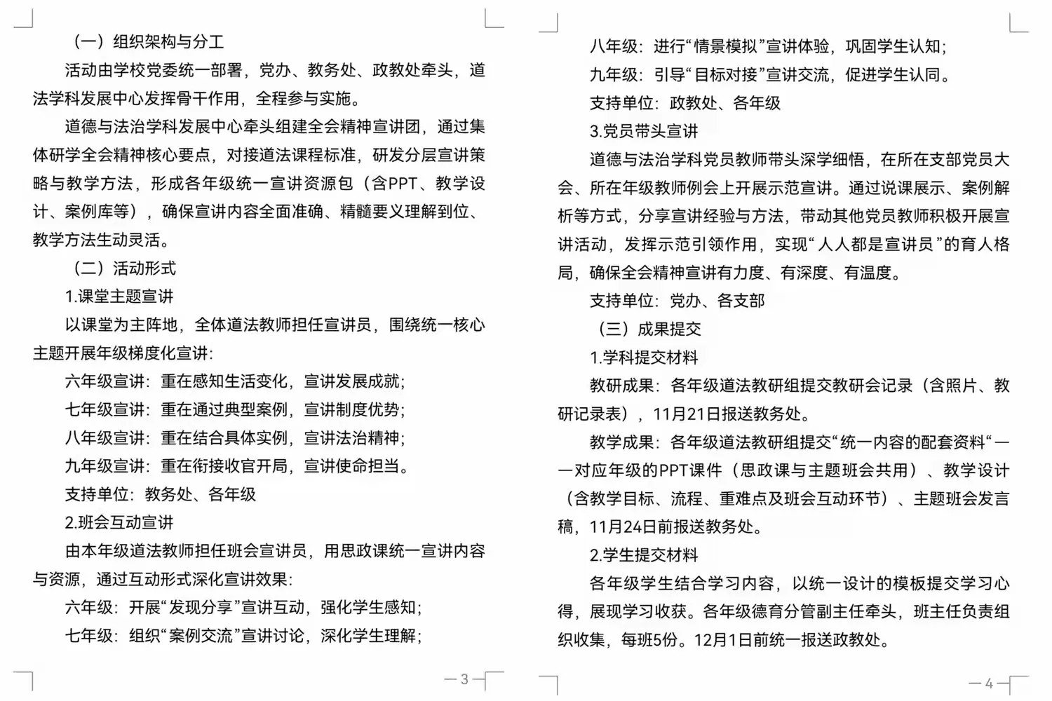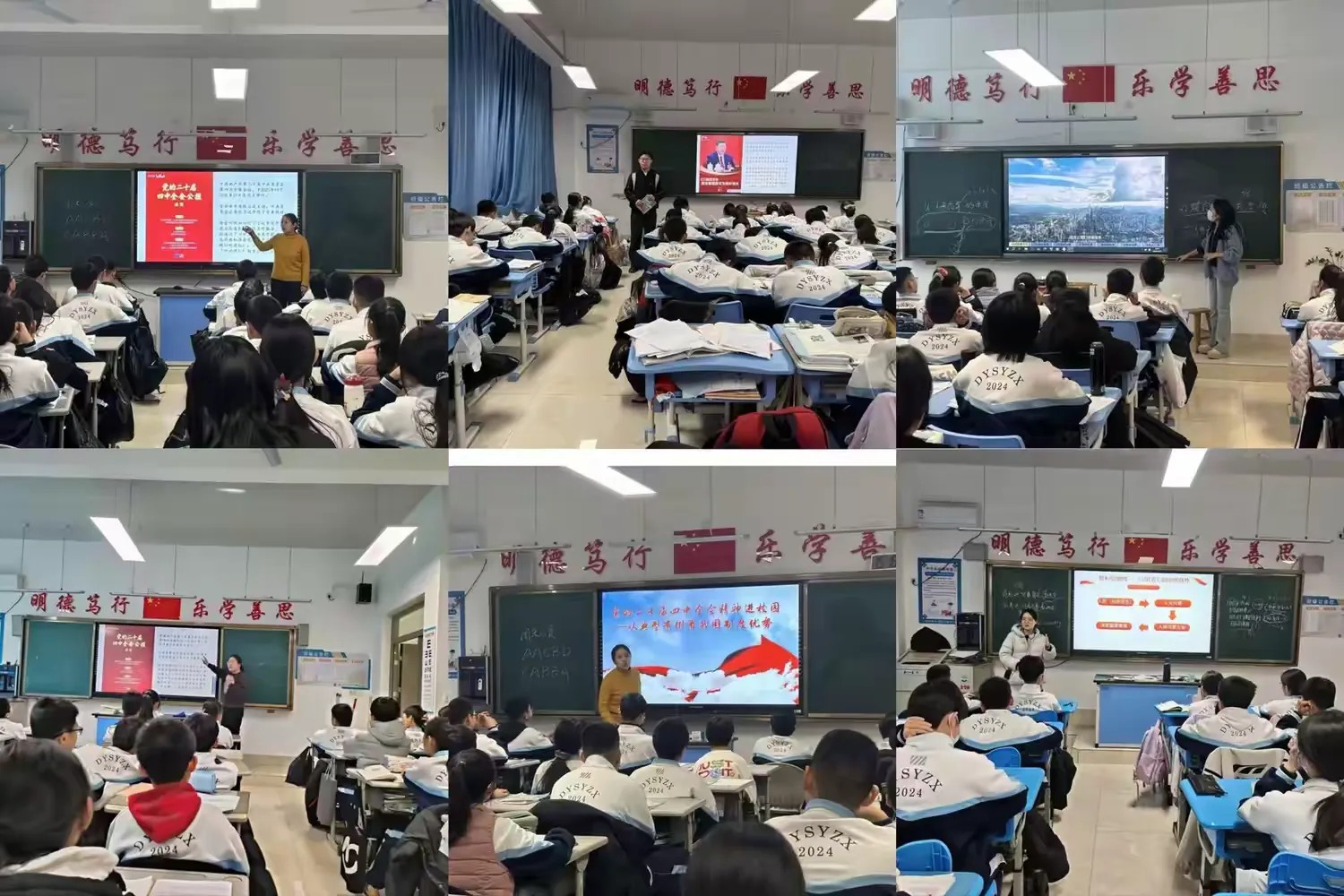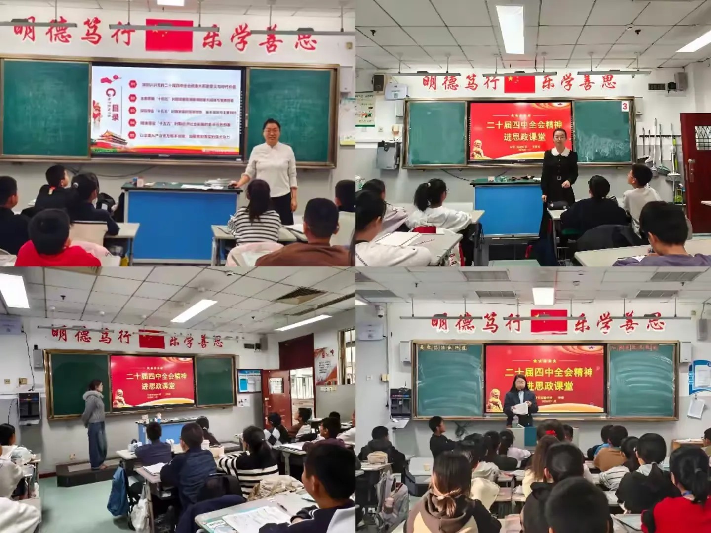 此次宣讲活动是落实全会精神的具体行动,更是学校深化思政教育的重要实践。活动中,道法学科教师、党员教师率先垂范、深耕细研,以饱满的热情带动学生积极参与,他们先做学习者,再当宣讲员,在备课研讨中深化理论认知,在课堂互动中传递思想力量,成功营造出全员学习、全员宣讲、师生同频共振、共同提升政治修养的浓厚氛围。这种师生双向奔赴、教学相长的良好态势,让全会精神不仅成为知识传授的内容,更化作师生共同的精神追求与行动自觉。