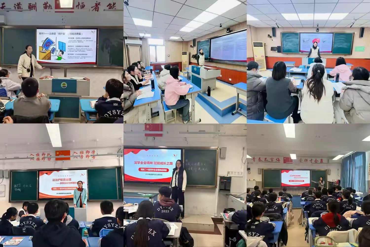为确保宣讲工作精准落地,道法学科发展中心组建宣讲团,组织各年级道法教师深入研读全会精神核心要点,紧扣道法课程标准,匠心独运地设计分层宣讲策略与多元化教学方法。