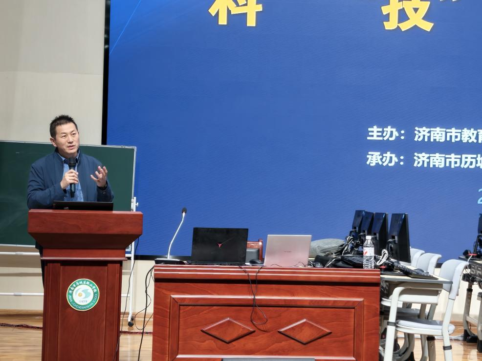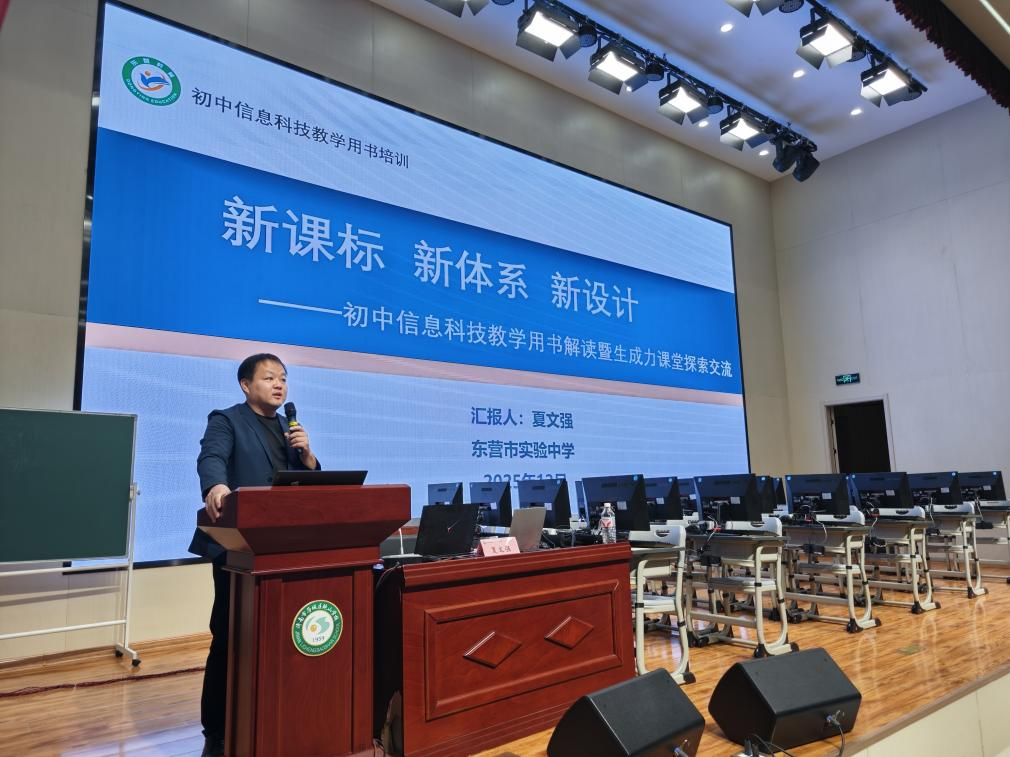 受济南市教科院邀请,我校信息学科中心主任、山东省综合实践活动兼职教研员、山东教育出版社初中信息科技教学用书分册主编夏文强老师参加了此次活动,并作题为《新课标 新体系 新设计—初中信息科技教学用书解读暨生成力课堂探索交流》的专题报告,解读新教材的同时,对于我校生成力课堂的探索进行了分享,得到了与会领导和老师们的一致好评和认可。