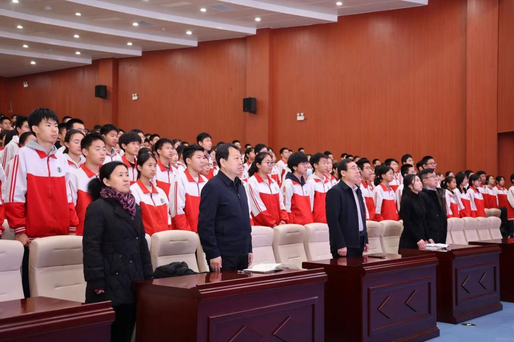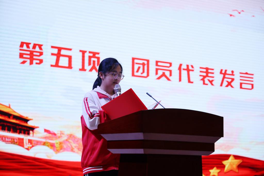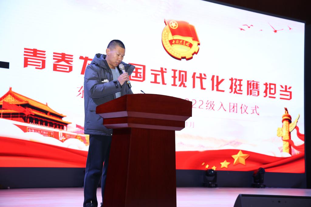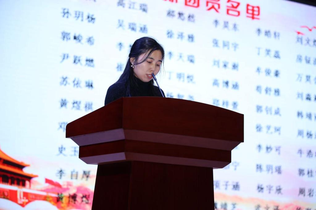 学校教师发展中心主任、2022级年级主任赵学刚在讲话中对团员青年提出殷切期望,鼓励全体同学要以入团为新起点,坚定不移听党话、跟党走,不负时代与韶华,用优秀的表现为团旗增色,为母校添彩。仪式在嘹亮的《中国共产主义青年团团歌》中圆满落幕。