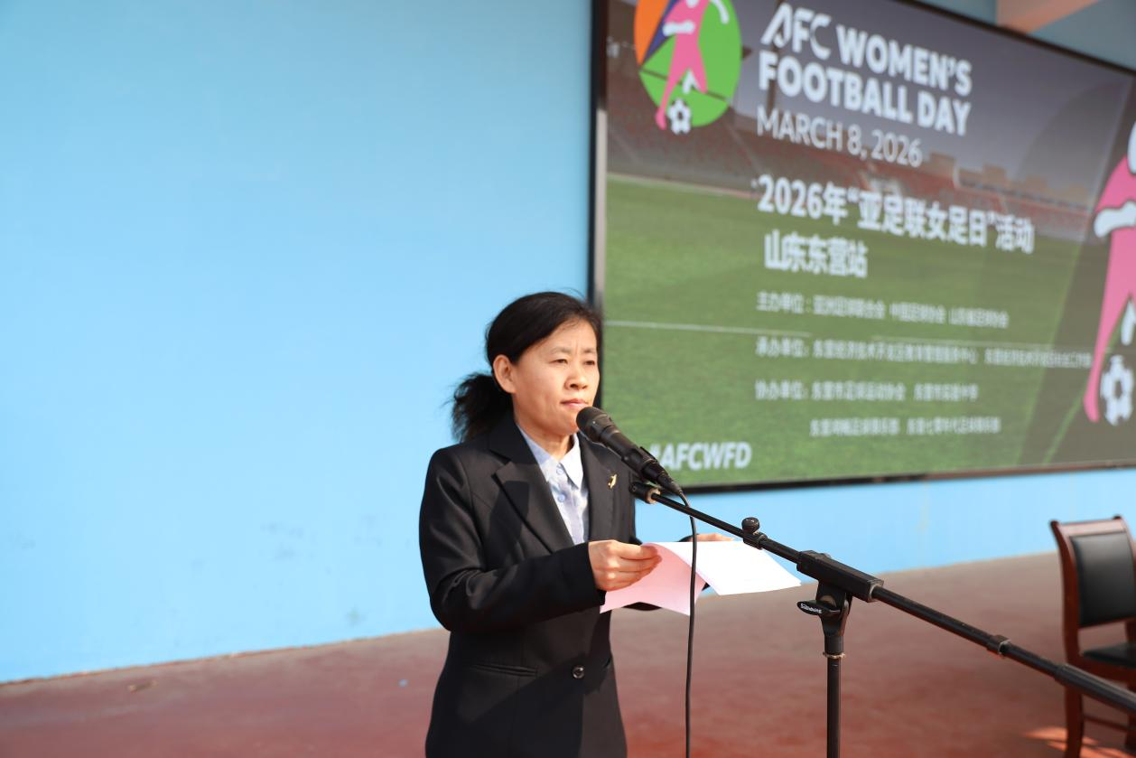 活动仪式首先由我校体卫艺办公室主任于春梅致辞,于主任表示此次活动落户东营市实验中学既是对我校校园足球工作的充分肯定,更是助力青少年女子足球普及发展、厚植人才根基的重要契机。近年来,东营市实验中学持续深化体教融合,大力推进校园足球普及,发挥引领作用,取得了显著成效,希望以此次活动为纽带,引导更多女孩走进绿茵场,爱上足球运动,在运动中享受快乐、锤炼意志、全面发展。