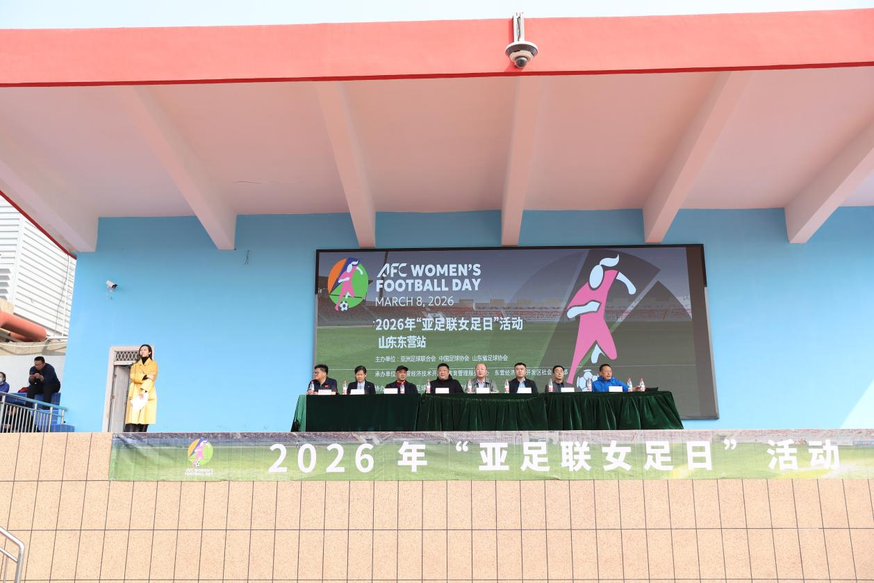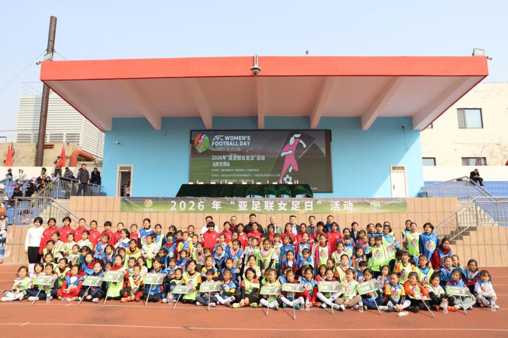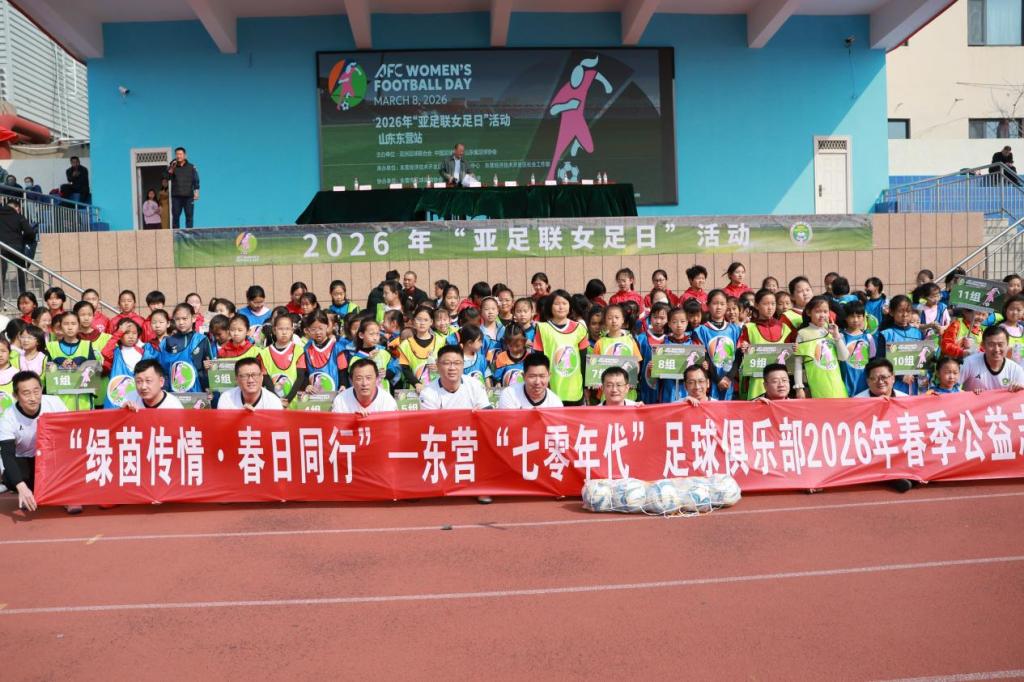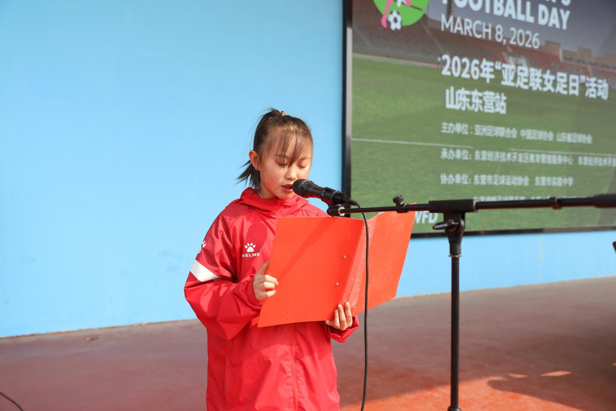 晴空送暖,绿茵逐光。3 月 21 日下午,2026 年 “亚足联女足日” 女孩足球节山东东营站活动在东营市实验中学运动场隆重开幕。本次活动由亚洲足球联合会、中国足球协会、山东省足球协会主办,东营胜利(开发区)教育管理服务中心、东营经济技术开发区社会工作部承办,东营市足球运动协会、东营市实验中学、东营鸿畅足球俱乐部、东营七零年代足球俱乐部共同协办。旨在普及女子足球运动,传递快乐足球理念,助力青少年健康成长。