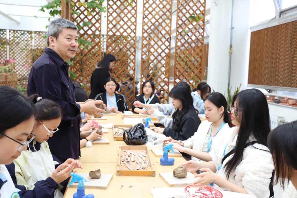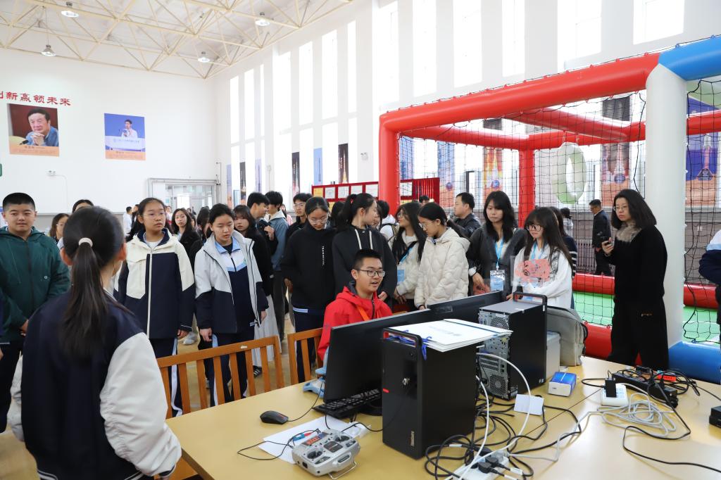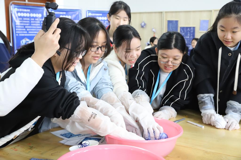 欢迎仪式结束后,交流团在我校师生的热情引导下,开启了一场沉浸式特色体验之旅。体育馆内科创社团,我校学子化身“小小讲解员”,手把手指导香港嘉宾操作互动设备,展示智能机器人、编程等科创亮点;传统文化体验区,扎染、泥塑、书法、剪纸等项目,让香港师生切身感受到中华传统文化的魅力。