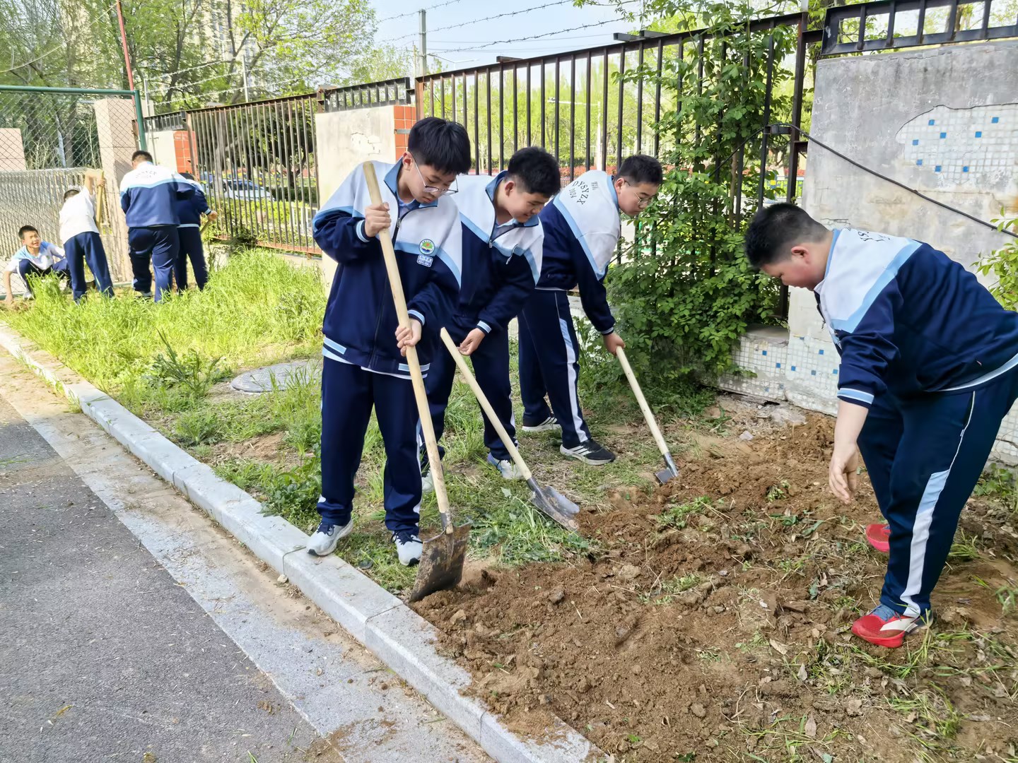 在班主任和劳动课教师的带领、指导下,学生们充分利用劳动课、校本课程等课余时间,积极投身翻地、除草、浇水等基础劳动实践活动。校园里,同学们挽起衣袖、俯身劳作,分工协作、互帮互助,一个个忙碌的身影成为校园里最动人的风景,劳动的热情在校园里蓬勃涌动,劳动教育实践工作开展得热火朝天,同学们在亲身实践中初步掌握了基础劳动技能,感受到了劳动的艰辛与快乐。