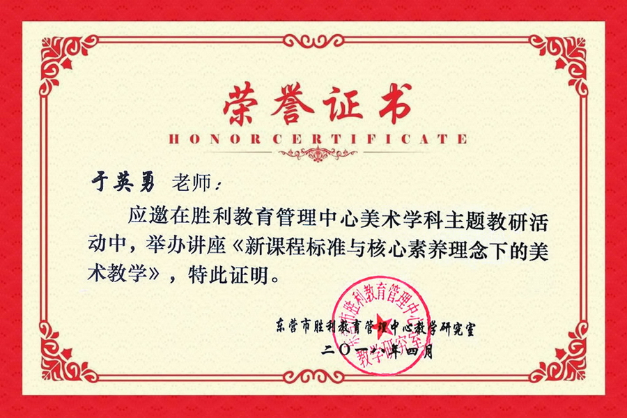 4月24日,我校美术学科于英勇老师受胜利教育管理中心教研室邀请,为教管中心美术学科主题教研活动做题为《课程标准、核心素养与美术教学》的讲座。