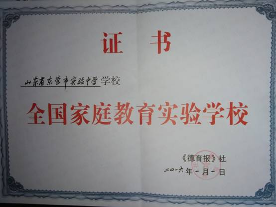 近日,我校收到《德育报》社颁发的“全国家庭教育实验学校”和“《德育报初中生家长宝典》周刊理事长单位”两份证书。这是我校和《德育报》社走向深入合作的结果。“全国家庭教育实验学校”的确立,也表明我校在家庭教育指导和家长学校工作上再进一步。