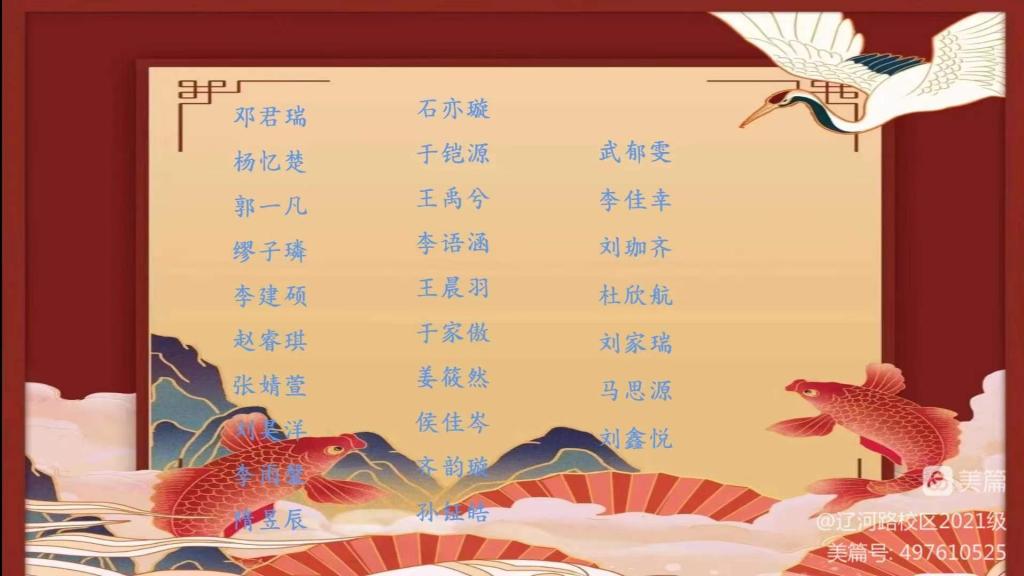 “学向勤中得,萤窗万卷书”为表彰先进,树立榜样,激励全体学生更上一层楼,以高昂的热情投入到自己的学习工作中去,掀起一股良好的学习风气,2022年11月21日,辽河路校区2021级对本学年期中考试成绩优秀的学生进行了表彰。本次大会由孙静茹老师主持。